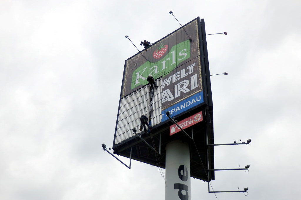Hier sind wir eingebunden bei der Kreativ Group GmbH, welche die größten Werbetürme Deutschlands besitzt (bis 65 Meter Bauhöhe).