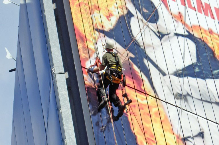Montage neuer Beschriftungen oder aufziehen von Bannern.
